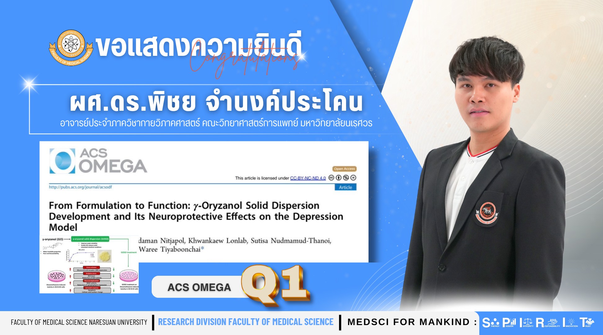 คณะวิทยาศาสตร์การแพทย์ ขอแสดงความยินดีกับ ผศ.ดร.พิชย จำนงค์ประโคน