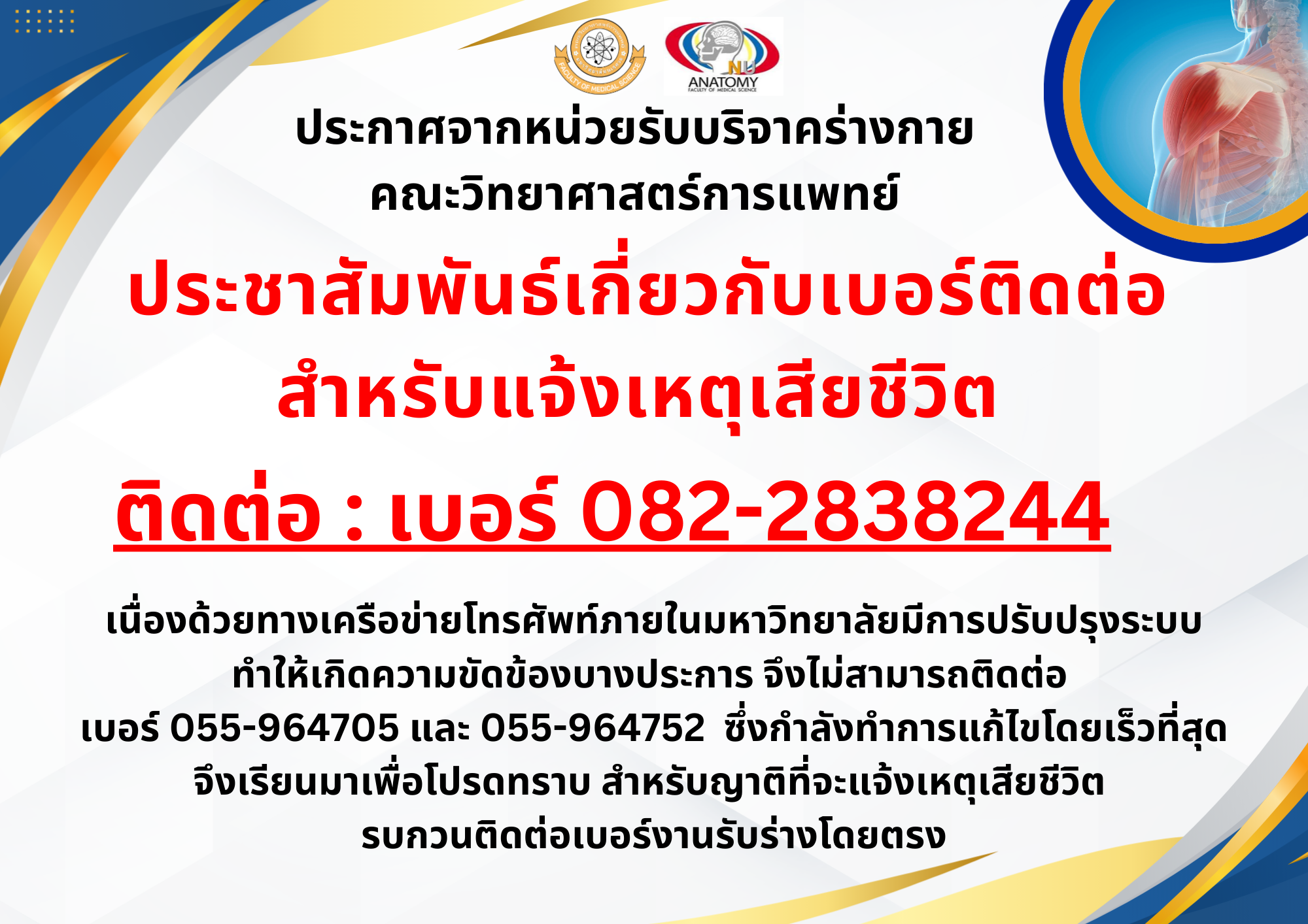 ประกาศจากหน่วยรับบริจาคร่างกาย คณะวิทยาศาสตร์การแพทย์
