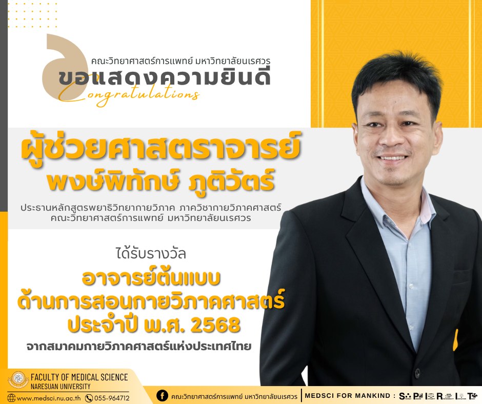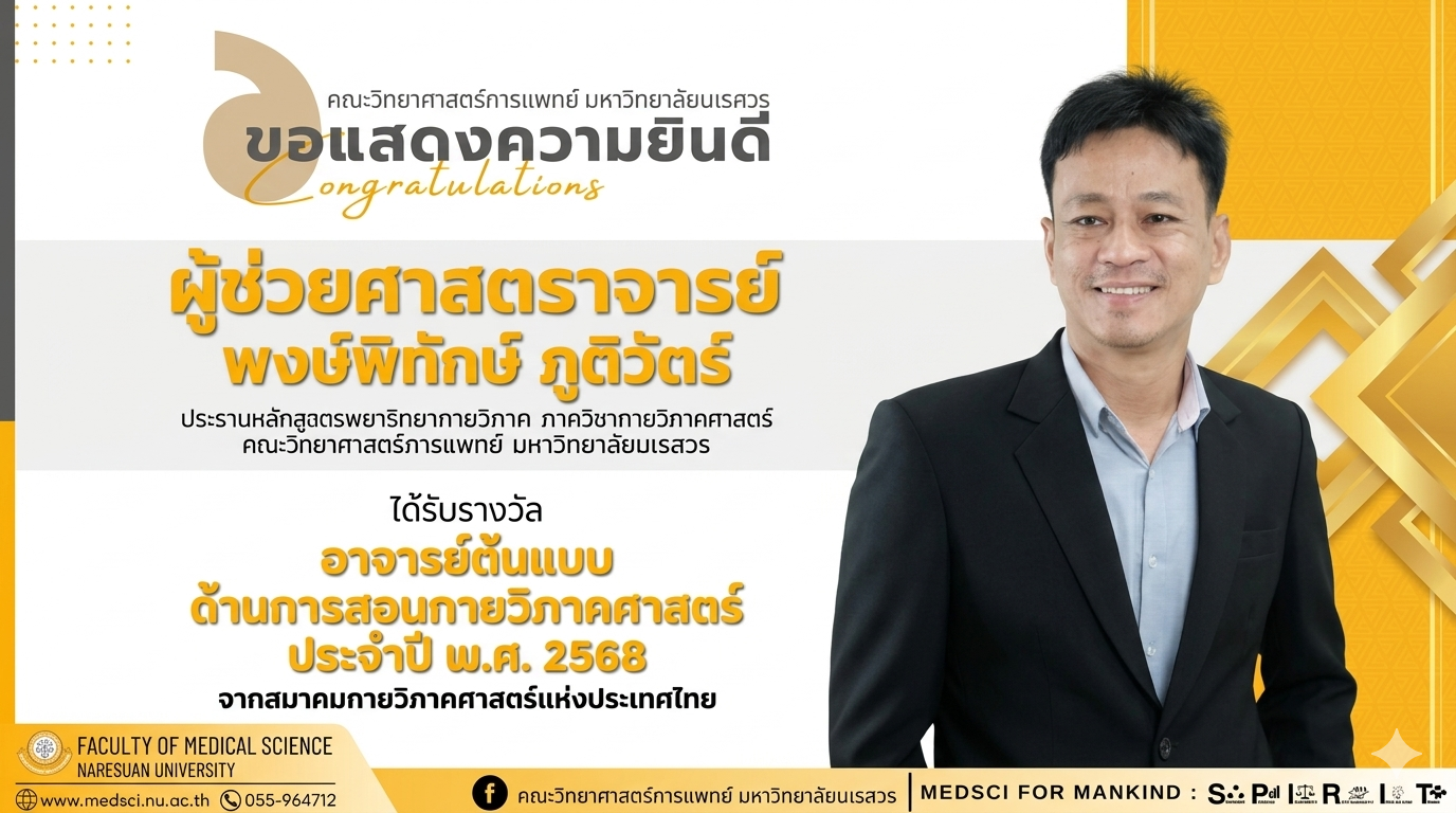 คณะวิทยาศาสตร์การแพทย์ มหาวิทยาลัยนเรศวร ขอแสดงความยินดีกับ